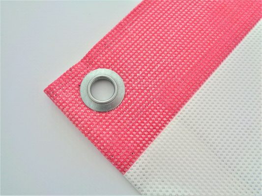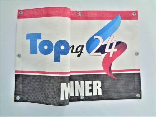 - BANER SIATKOWY / SIATKA MESH – jest to siatka o dużo niższej gramaturze ok 280g dodatkowo ma mniej soczysty nadruk niż na banerze standardowym – jednak ma inną zaletę przepuszcza wiatr, jak sama nazwa wskazuje jest to siatka. Idealna do powieszenia na płotach gdzie jest duże nasilenie wiatru lub np. przy autostradach na dużych powierzchniach reklamowych umieszczonych na polach. Dzięki temu że siatka przepuszcza wiatr w takich miejscach jest dużo bardziej trwała. Również jak baner standardowy ma wzmocnienie zgrzewu i oczka nabijane maszynowo.
